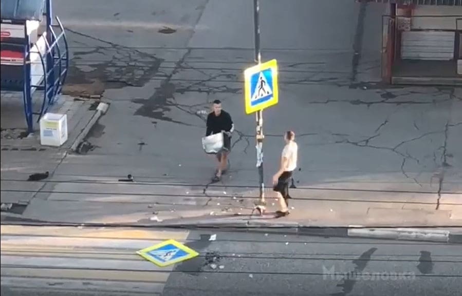 (ВИДЕО, 18+) Когда патриотизм переходит все границы: Два россиянина выломали желто-голубые дорожные знаки