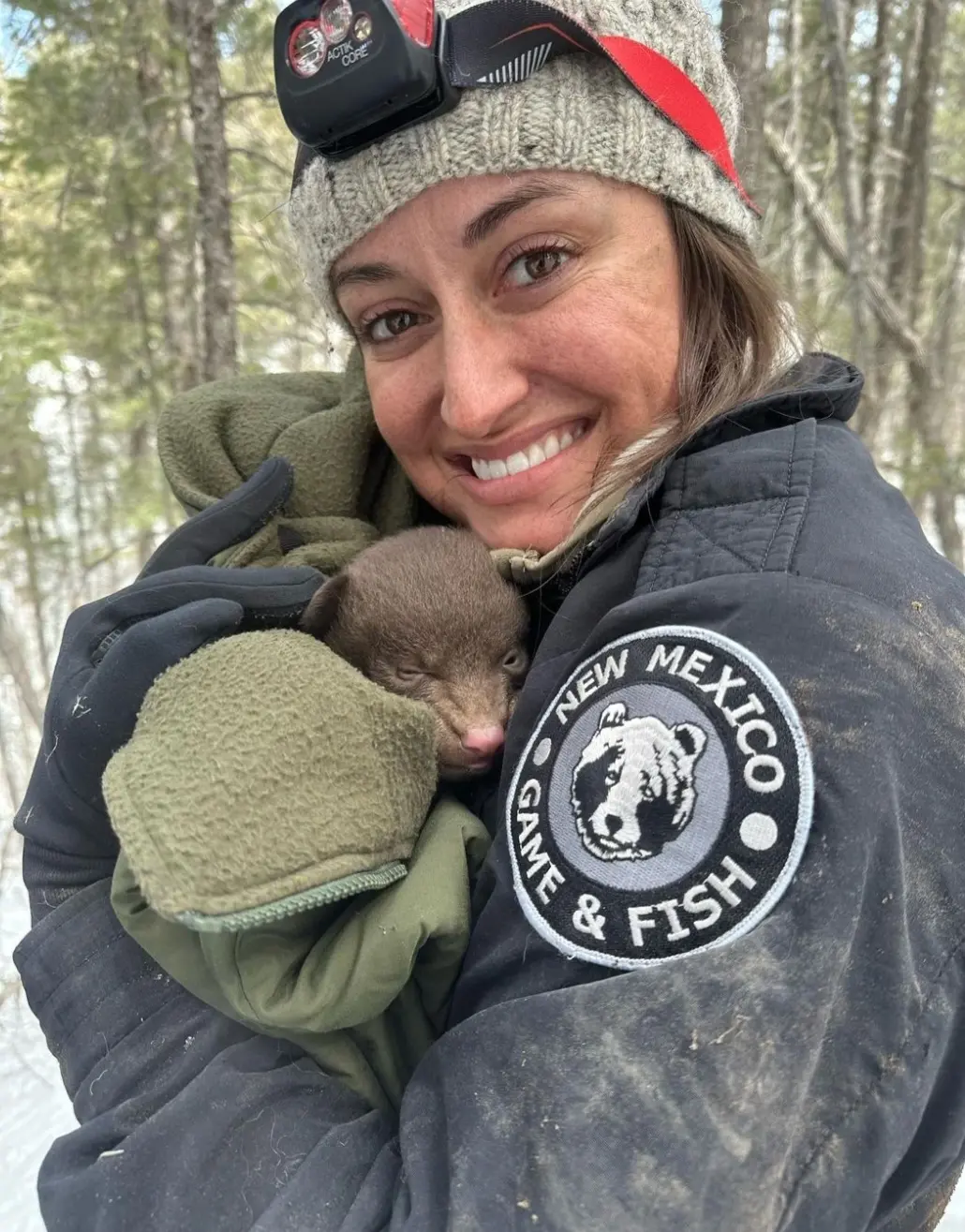Департамент по охоте и рыбному хозяйству опубликовал фото рейнджеров, участвующих в исследовательском проекте в Нью-Мексико. На снимках довольные сотрудники держат в руках крохотных медвежат.