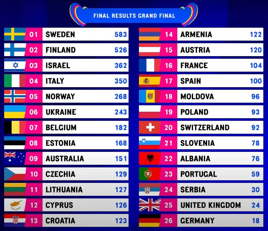 (ВИДЕО) Швеция выиграла «Евровидение-2023», Молдова заняла 18-е место