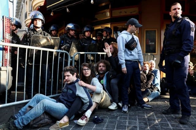 Правоохранители в Париже применили слезоточивый газ против климатических активистов, которые заблокировали вход в здание, где должно состояться общее собрание французской энергетической компании TotalEnergies.