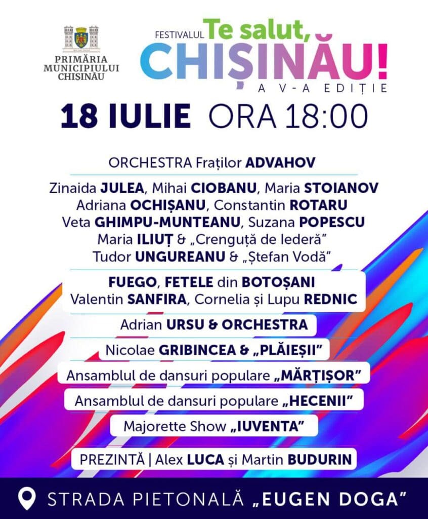 Мэрия Кишинёва приглашает граждан на фестиваль «Te salut, Chișinău!», посвящённый 589-летию со дня первого документального упоминания города.