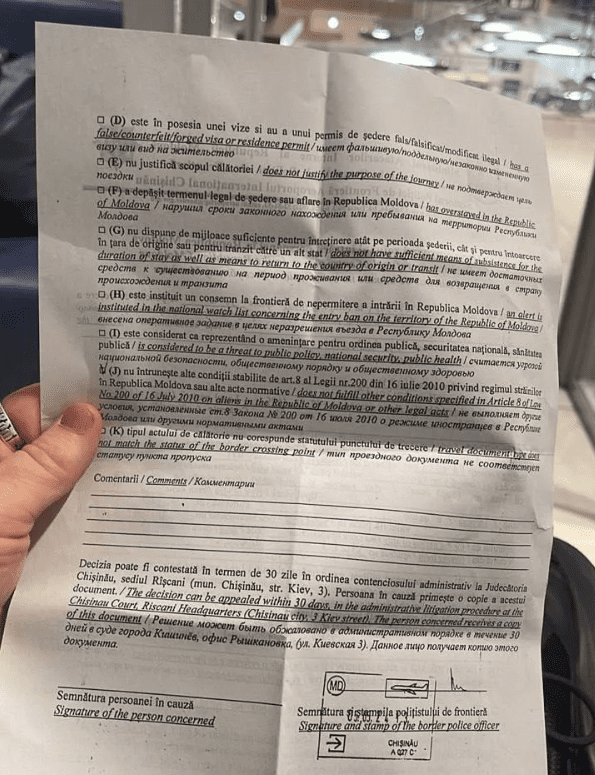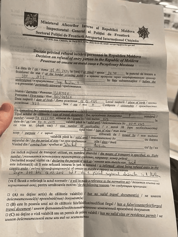Известно, что исполнитель предъявил пограничникам паспорт гражданина Узбекистана. Позднее он опубликовал в соцсетях документ, с которым его развернули на границе.