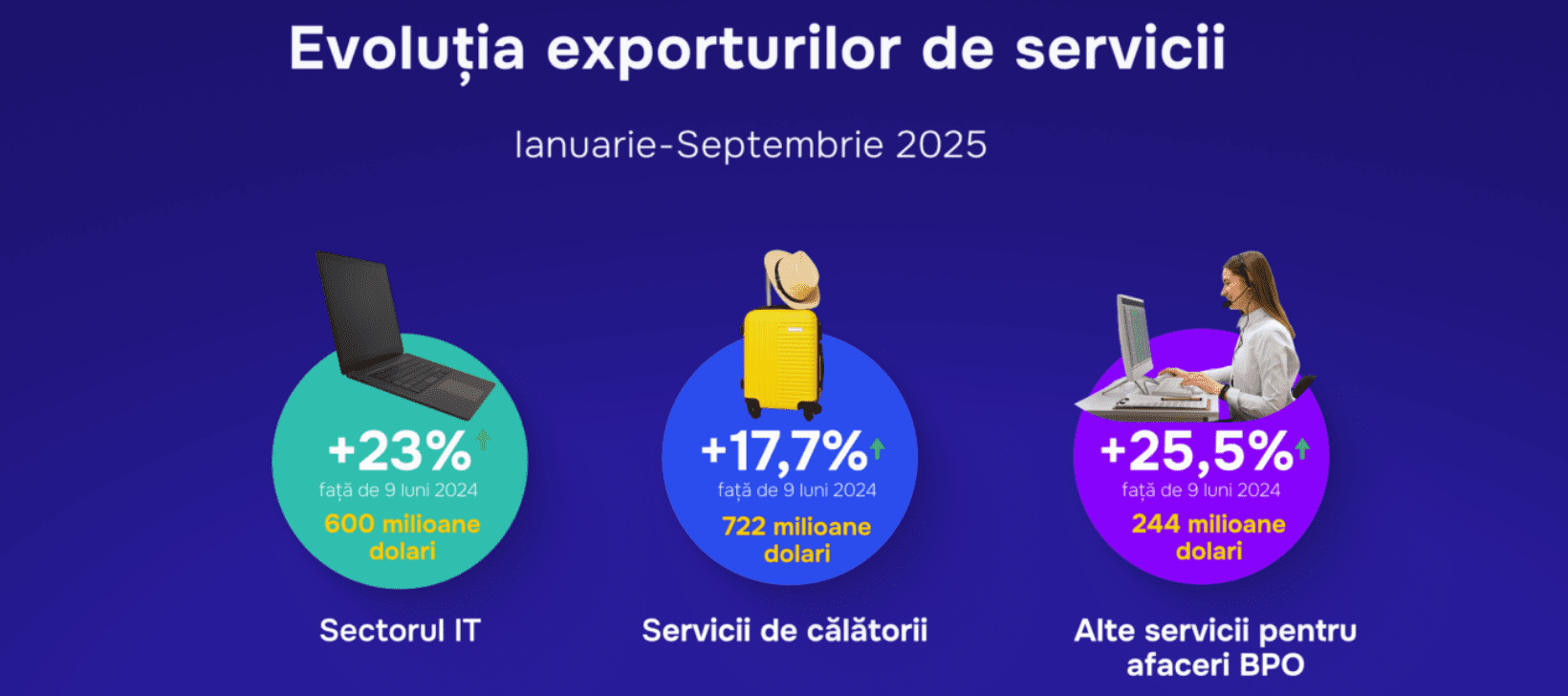 По информации министерства, в период с января по сентябрь экспорт услуг вырос в реальном выражении на 9,7%. Этот показатель сыграл решающую роль в общей динамике экономики: из 2% роста ВВП, зафиксированных за этот период, 1,4 процентных пункта обеспечила именно сфера услуг.