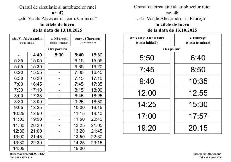В столичной администрации сообщили, что с сегодняшнего дня жители Чореску, особенно школьники, смогут быстрее и удобнее добираться домой. Расписание автобусов №47 и №48 было скорректировано в соответствии с окончанием уроков в местных школах.
