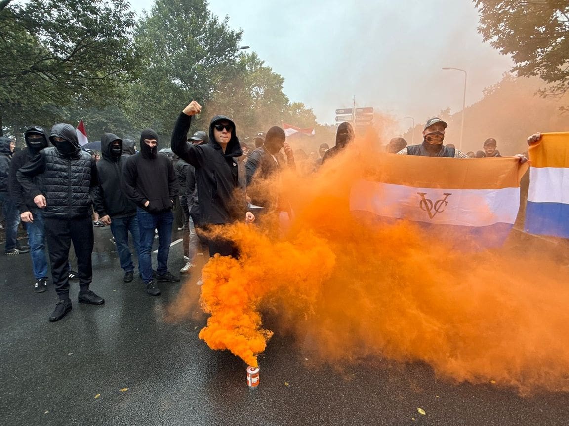 Акция началась мирно на Малиевельде с лозунгами против существующей политики предоставления убежища. Некоторые участники принесли портреты убитого американского правого активиста Чарли Кирка и зажгли файеры в парке.