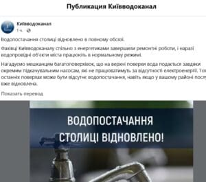 В Киеве полностью восстановлено водоснабжение, начинается возвращения тепла в дома киевлян