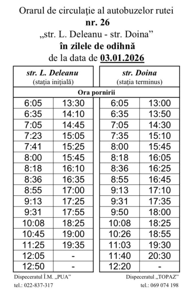 Мэрия Кишинева объявила о введении нового графика движения для ряда столичных автобусов. Изменения вступают в силу с сегодняшнего дня, 3 января 2026 года, и будут действовать исключительно по субботам и воскресеньям.