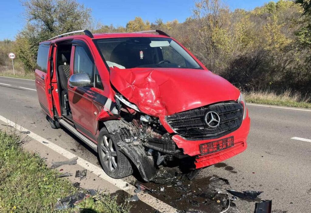 Сотруднику Инспектората полиции Яловен понадобилась медицинская помощь после того, как его служебный автомобиль Dacia был сбит сзади микроавтобусом Mercedes Vito.