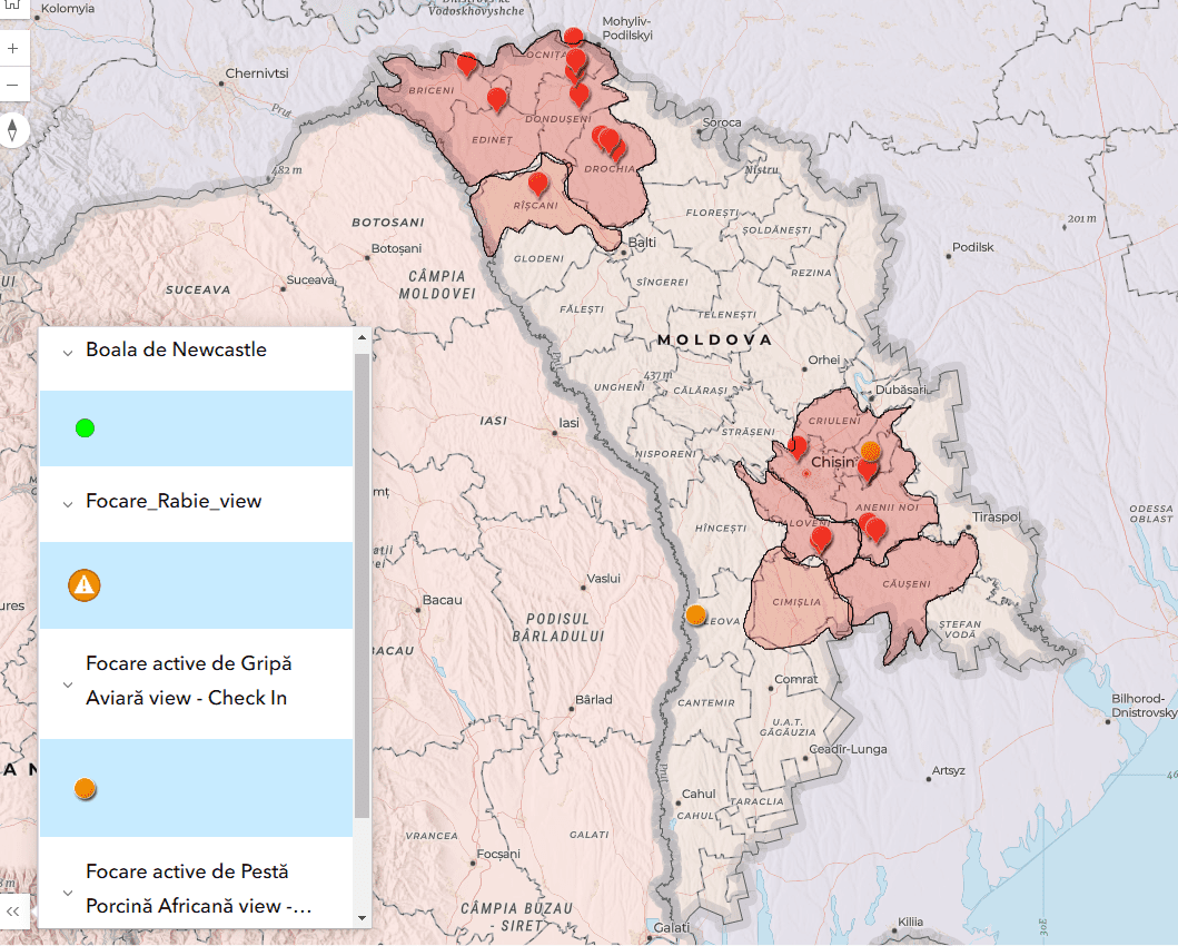 В числе зарегистрированных очагов: африканская чума свиней (АЧС), птичий грипп и бешенство. В Кишиневе был выявлен очаг АЧС среди домашних свиней. Также были зарегистрированы случаи заболевания у диких кабанов Дондюшанском и Бричанском районах. В Леова был зафиксирован очаг высокопатогенного птичьего гриппа (H5N1) среди домашних птиц, а в Единецком и Новоаненском районах – случаи бешенства у лисиц.