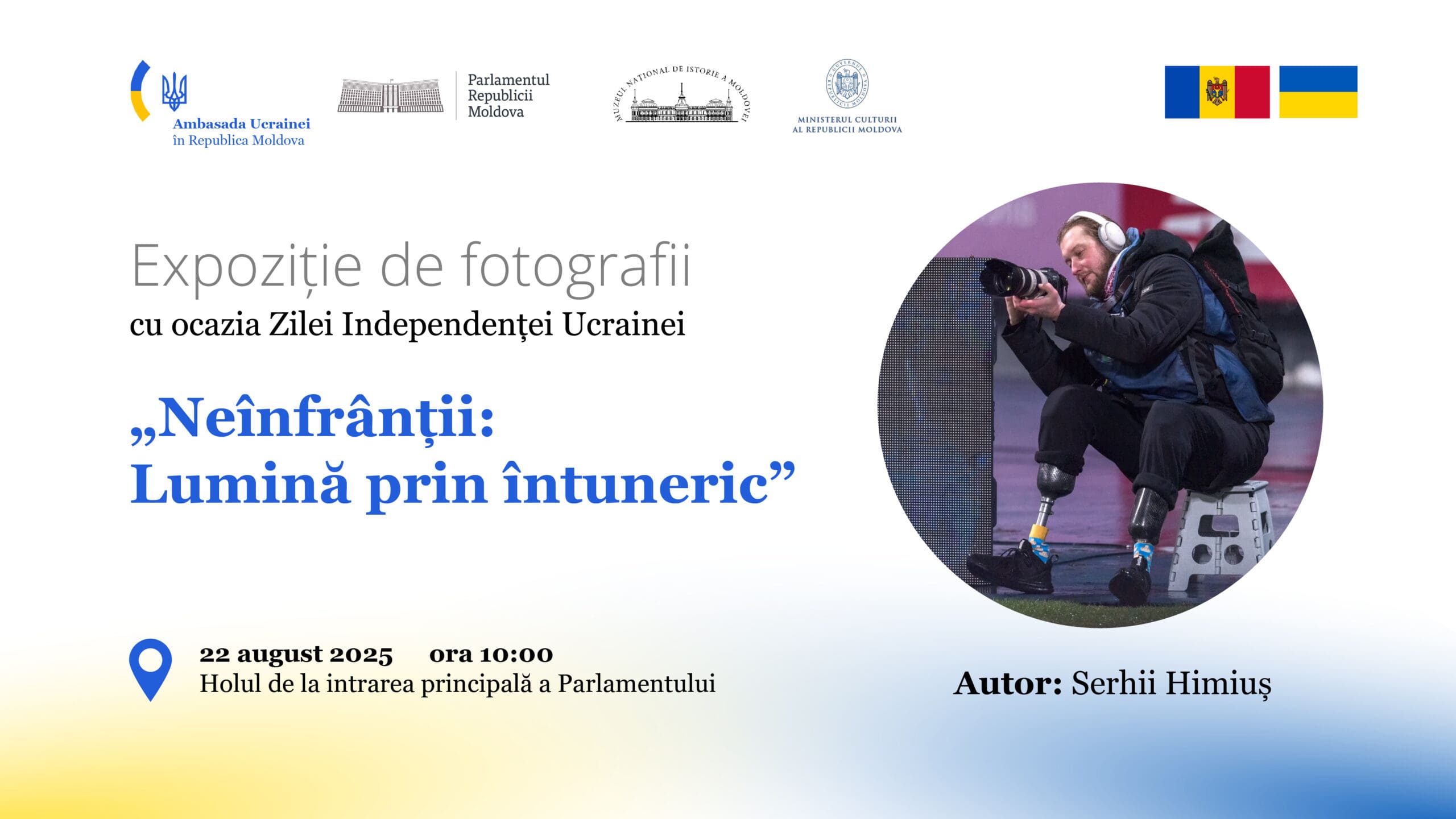 В пятницу, 22 августа, в холле главного входа Парламента Молдовы состоится открытие фотовыставки «Несломленные: Свет сквозь тьму», автором которой является украинский фотограф Сергий Химиуш. Начало мероприятия запланировано на 10:00.