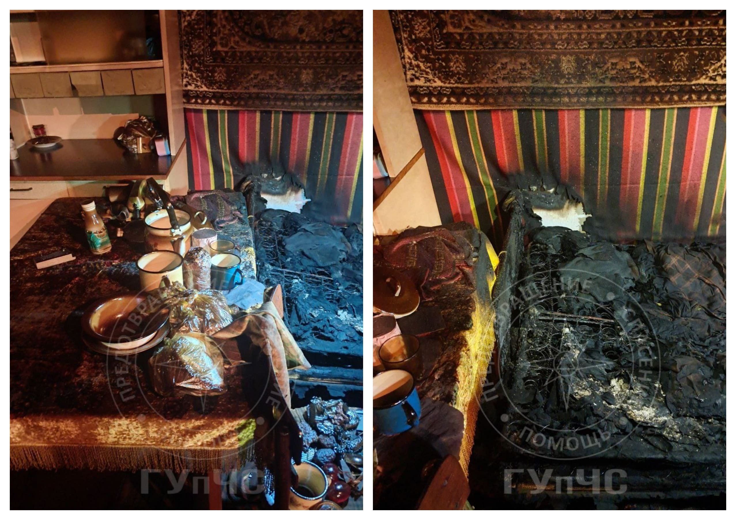 Во время осмотра в комнате, на стуле рядом с кроватью, были найдены конфеты, кулич, спички и упавшая поминальная свеча. По предварительной версии, именно свеча могла стать источником возгорания. По факту случившегося проводится проверка.