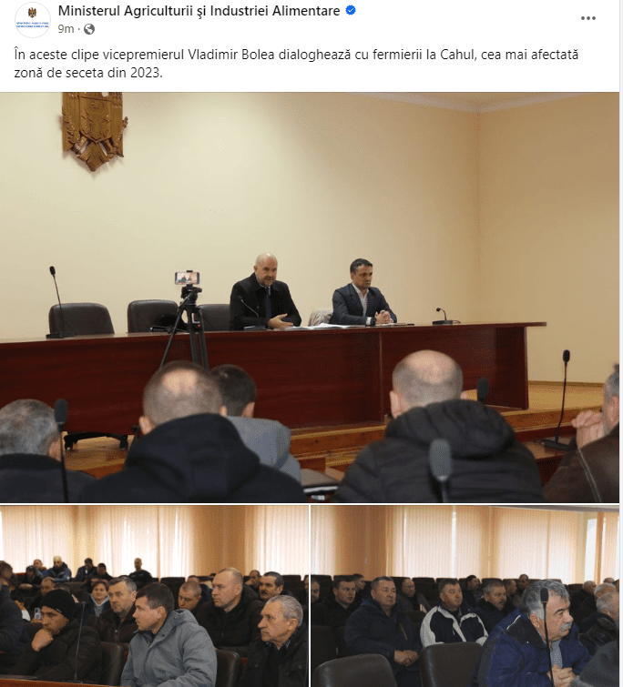 Тем временем в публичном пространстве появилась информация о том, что некоторые фермеры с юга страны отказались от встречи с Владимиром Боля. Минсельхоз опубликовал фото со встречи главы учреждения с аграриями.