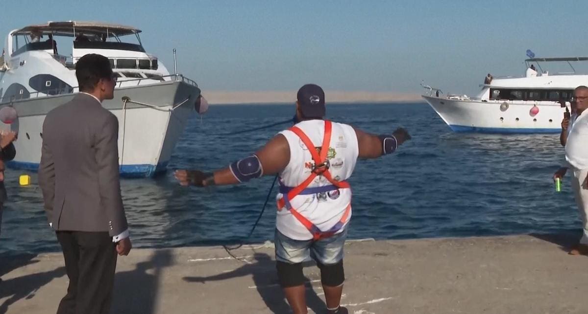 44-летний египетский борец Ашраф Махрус передвинул судно весом 700 тонн на 15 метров, зажав привязанный к нему трос в зубах. Спортсмен намерен подавать заявку в Книгу рекордов Гиннесса.