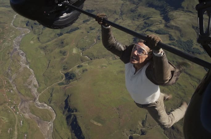 Прыжки проходили в Дракенсберге (ЮАР), на высоте более 2 200 метров. Круз прыгал, парашют загорался, после чего актёр отцеплял его и раскрывал запасной — всё это происходило за 2,5–3 секунды, прежде чем ткань полностью сгорала. В некоторых прыжках на теле Круза также была закреплена камера весом 22 кг для съёмки сцен вблизи
