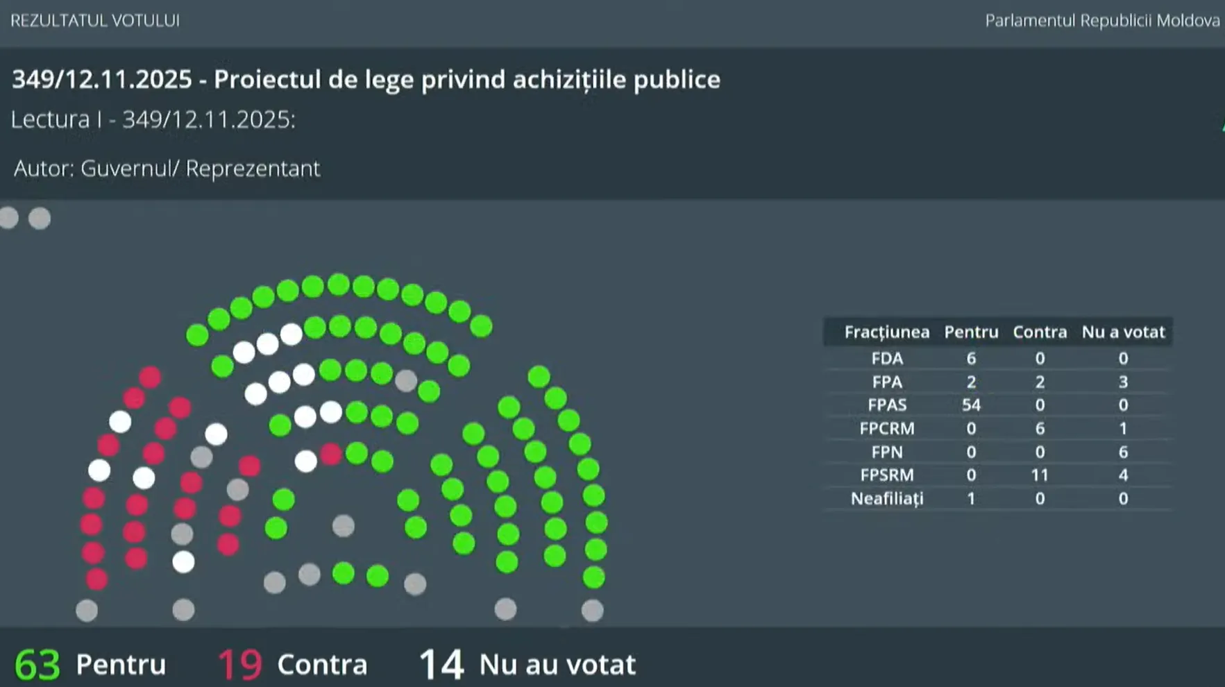 Обсуждаемый проект, касающийся государственных закупок, в первом чтении поддержали 63 депутата, из которых 54 от ПДС, шестеро от партии «Демократия дома» и двое от блока «Альтернатива».