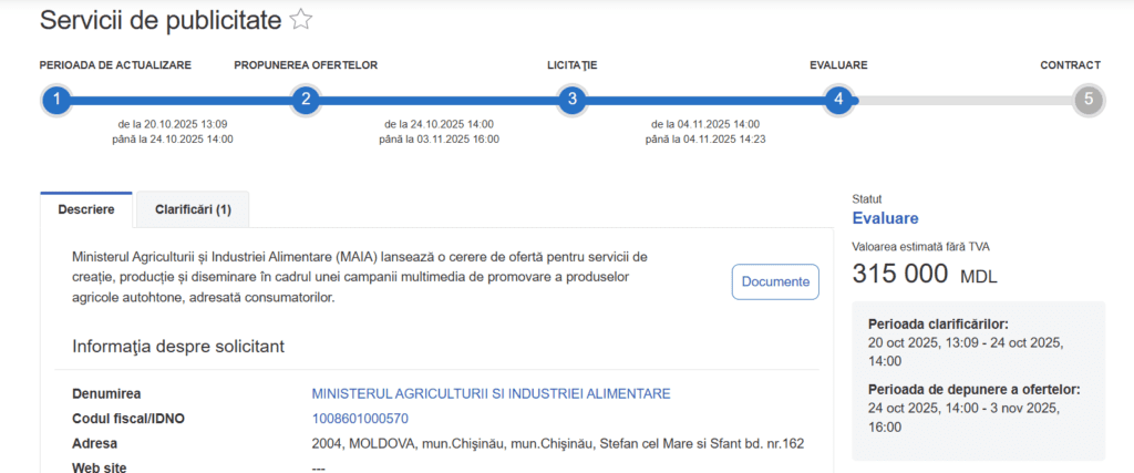 145 000 леев на разработку видеоролика для ТВ и онлайн версиях;