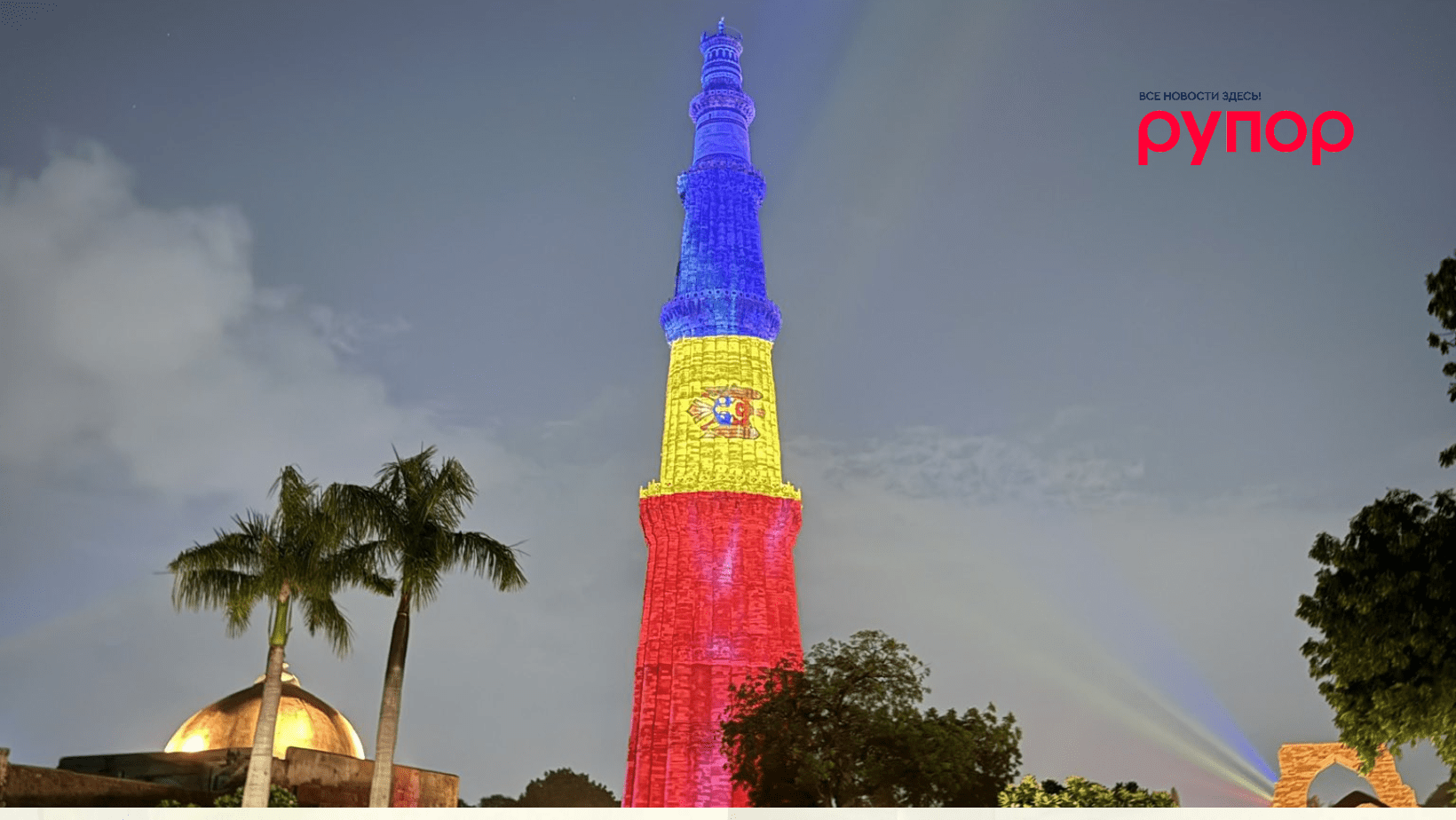 Особый жест дружбы продемонстрировала Индия: в Нью-Дели комплекс Кутб-Минар был подсвечен цветами молдавского флага.