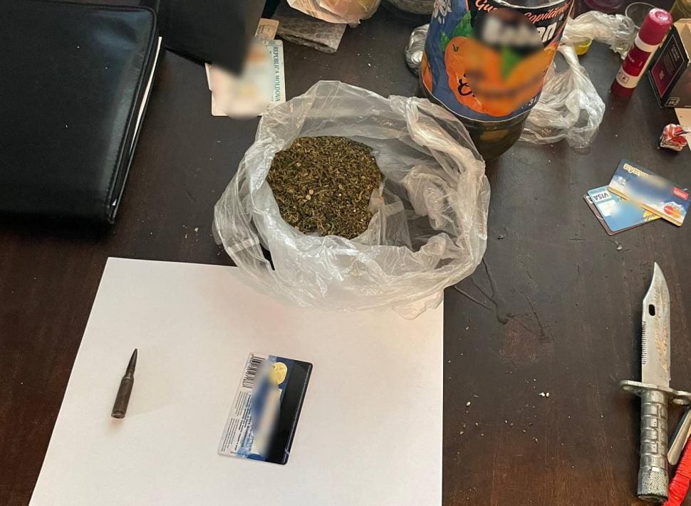 Там стражи правопорядка обнаружили около 50 граммов сухого зеленого растительного вещества со специфическим запахом каннабиса, самодельное устройство для употребления наркотиков, состоящее из двух пластиковых бутылок, и боевой патрон калибра 5,45 мм.