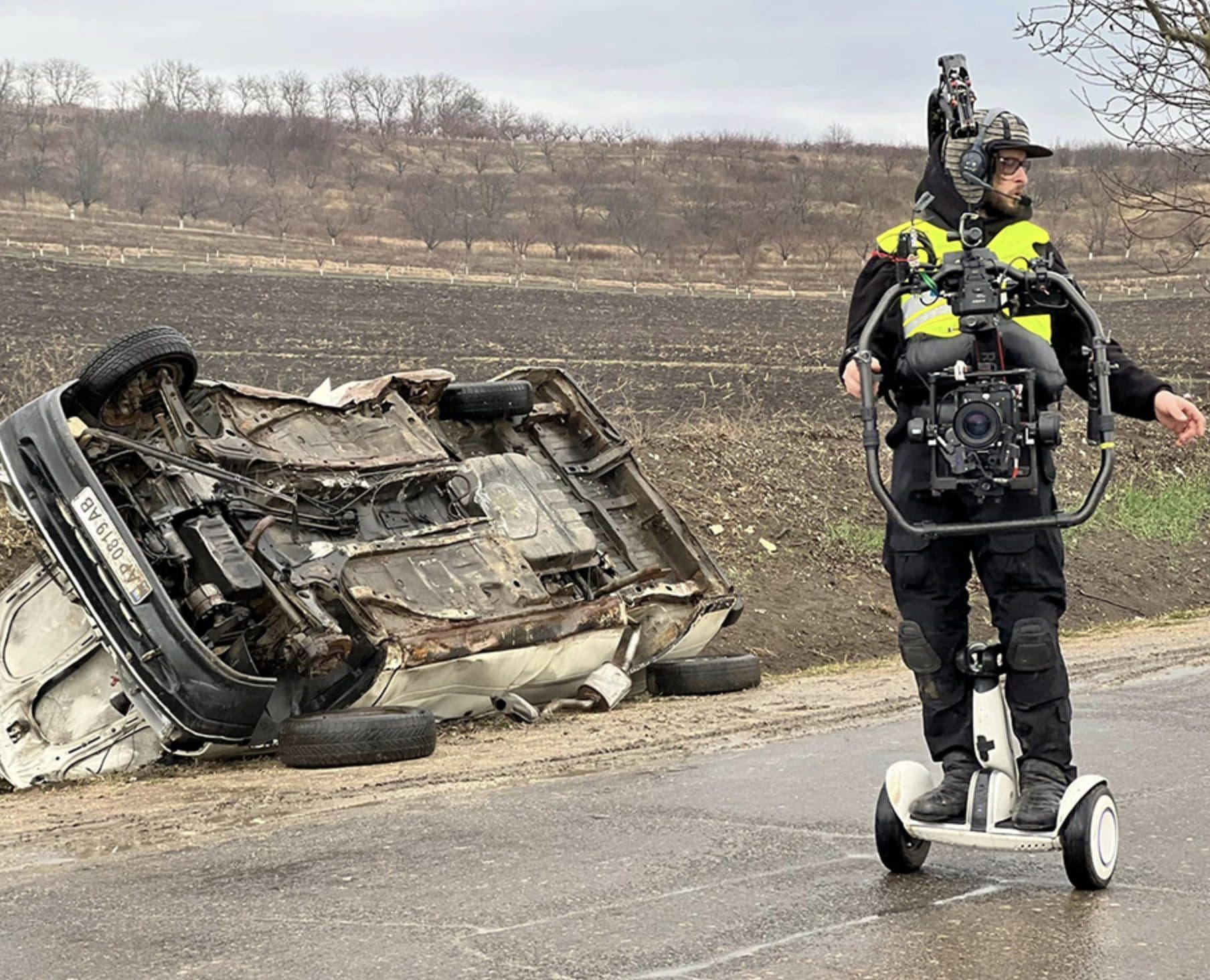 На трассе недалеко от Русештий Ной на протяжении нескольких дней местные жители наблюдали разбитые и брошенные машины, ставшие декорациями к киноленте.