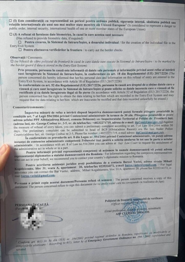 Согласно представленным бумагам, ограничение было введено румынскими властями на основании соображений общественного порядка и национальной безопасности.